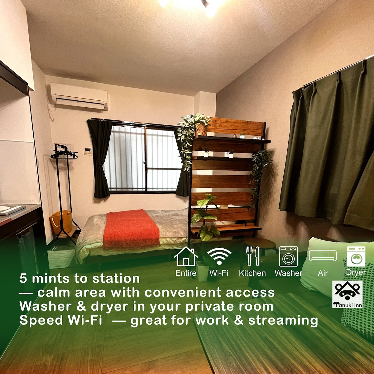 Þægilega staðsett í Kyoto og Osaka, 5 mínútna göngufæri frá stöðinni, þurrkari og þvottavél, hröð Wi-Fi tenging, Prime Video