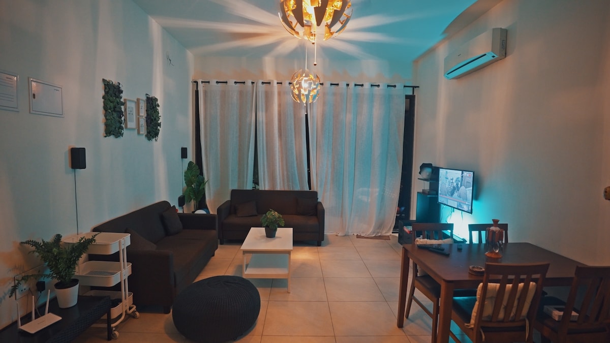 Notaleg 1BHK, 10 mínútur frá Mandwa Jetty - gróskumikill grænn flótti þinn! Fullkomið fyrir afslappandi helgi, vinnuferð eða lengri dvöl. Sólrík stofa, skýjalíkt king-size rúm, svalir fyrir morgunkaffi og flott baðherbergi með regnsturtu. Hraðvirkt þráðlaust net, straujárn, hárþurrka og nauðsynjar fylgja. Slakaðu á í rólegu umhverfi með ströndum og kaffihúsum í nágrenninu og Swiggy og Zomato senda þér það sem þú þarft. Þar sem vinnan og flakkþráin mætast—komdu og hlaðaðu batteríin við sjóinn!