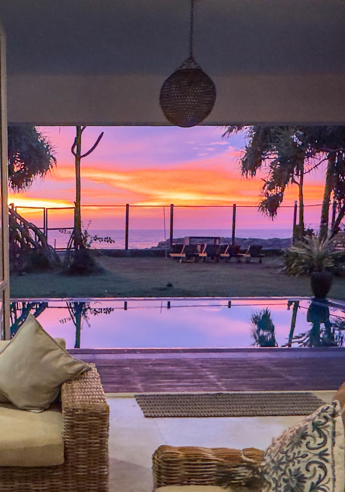 Ótrúleg villa með garði með útsýni yfir rólega sandströnd nærri Ambalangoda. Ókeypis loftræsting, þráðlaust net, síað vatn og morgunmatur með ávöxtum, eggjum, ristuðu brauði og heimatilbúinni sultu. Kokkurinn og húsfreyjan sem býr í þjónustuhúsinu í nágrenninu eru til staðar til að sjá um þig. Stór kingsize rúm með hágæða dýnum og rúmfötum. Zen samtímahönnun, en með fornum gluggum og hurðum, sléttum steypugólfum og fjölbreyttri blöndu af innréttingum. Í óendanlegu sundlauginni er magnað útsýni yfir ströndina og hafið.