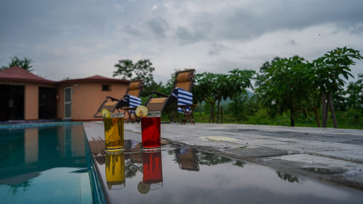 Kynnstu hinum glæsilega landslagi sem umlykur þessa gistieign. Inni í frumskóginum, umkringt fjöllum og Bariam-vatni – þorpið Mango Tress.. Aðeins 3 km frá miðbæ Pachmari, fjarri steypu og hótelanddyrum. 100% hreint súrefni úr náttúrunni. Náttúrulegt vatn úr 100 ára gömlum brunninum. Dýrin sem eru á staðnum koma frá býlinu sjálfu. Desi-þorp: Matur eldaður á Chulha eftir þínum kröfum! Upplifun sem kemur einu sinni á lífsleiðinni.