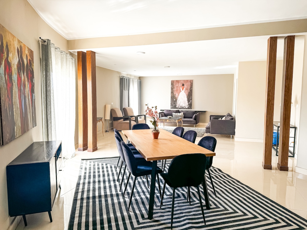 Indulge in this spacious 4‑BDR apartment offers a rare private pool, sun‑lit terrace, and modern comforts. Relax with fast Wi‑Fi, Smart TV, and full A/Cs, or cook in the fully equipped kitchen. Just 10 minutes from Cairo Festival Mall and 15 minutes from the airport, with free parking and complimentary airport pickup for longer stays. Perfect for families, groups, and business travelers seeking style, safety, and convenience.