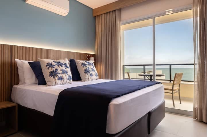Njóttu ótrúlegs útsýnis yfir endalausan bláan hafsins og táknræna póstkort borgarinnar Morro do Baldness frá þægindum og glæsileika herbergisins okkar. Slakaðu á með sjávargoluna og fegurð borgarinnar í bakgrunnsdúknum, ógleymanleg upplifun bíður þín.