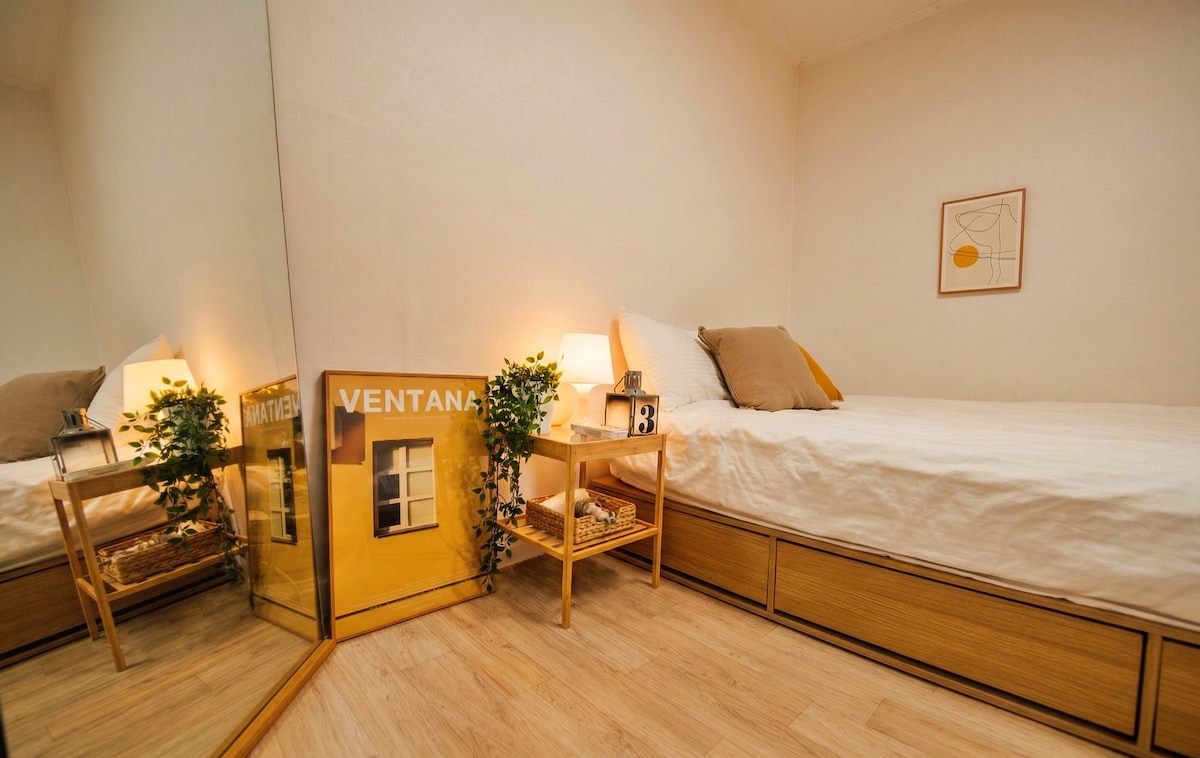 Just 30sec. 1st floor*Cozy*Hongdae Stn. 3Room4Bed.