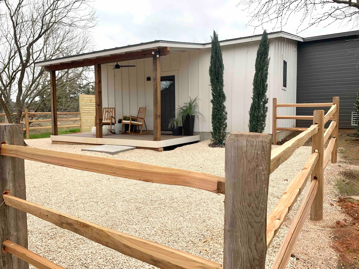 Dekraðu við þig á ógleymanlegri helgi á þessu fullkomlega endurbyggða nútímalega, sveitalega 2/2 bóndabýli. Staðsett í hjarta vínlandsins, þú munt finna þennan friðsæla griðastað 3 mínútur frá bænum. Slakaðu á í heita pottinum fyrir framan sérsniðna arininn eða sötraðu vín á einu þilfarinu sem sitja undir stórum, tignarlegum Oaks. Að innan er hægt að sökkva sér í glæsilega frágengna innréttinguna með kyrrlátu og fáguðu yfirbragði. Vertu með allt sem þú þarft á að halda. Þú munt njóta allra hluta þessa stresslausa heimilis. Kveðja!