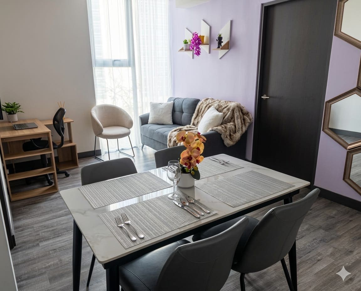 Sökktu þér í töfra þessarar íbúðar á 30. hæð SECRT Sabana, innblásin af *Alice in the Wonderland*. Hún er hönnuð með hlýlegu gólfi og ljósri innréttingu og er með sérherbergi, skáp og vinnurými. Fullbúið eldhús með nauðsynjum og baðherbergi með þægindum. Njóttu tilkomumikils útsýnis og kauptu snarl, drykki og persónulega muni sem eru í boði í íbúðinni. Allt sem þú þarft fyrir einstaka og þægilega dvöl. Bílastæði $ 15 til viðbótar