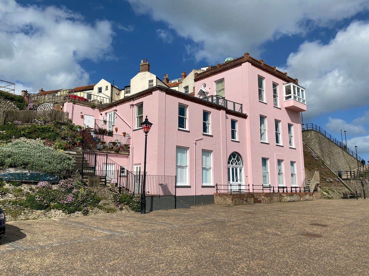 Þetta er fullkomið frí fyrir afslappandi frí. Þessi íbúð á efstu hæð er staðsett í hefðbundnum strandbæ og státar af sjávarútsýni og er staðsett við eina af elstu götum Cromer. Stutt er á bryggjuna og öll þægindi á staðnum. Íbúðin rúmar tvo einstaklinga þægilega. Við erum hundavæn og tökum vel á móti einum stórum eða tveimur litlum hundum. Annað til að hafa í huga Íbúðin er á efstu hæðinni, (ein hæð með bröttum stigum) og því þurfa gestir að geta klifið brattar tröppur til að komast inn í íbúðina.