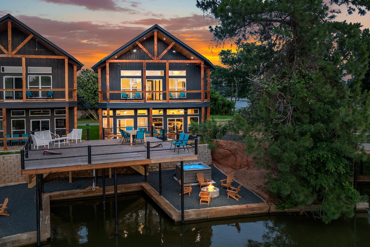 Backyard paradise on the lake! Guests will experience first-class accommodations at this stunning newly built lake front home. This fabulous home has everything you could need for a relaxing getaway! The property features 4 bedrooms + loft and 2.5 bathrooms with plenty of room to sleep 14 guests. Stunning views from the 2 story dock, 2 jet ski lifts, sandy beach, great fishing, amazing outdoor living space, large mature trees, fire pit, and kayaks. Ultimate fun for all!
