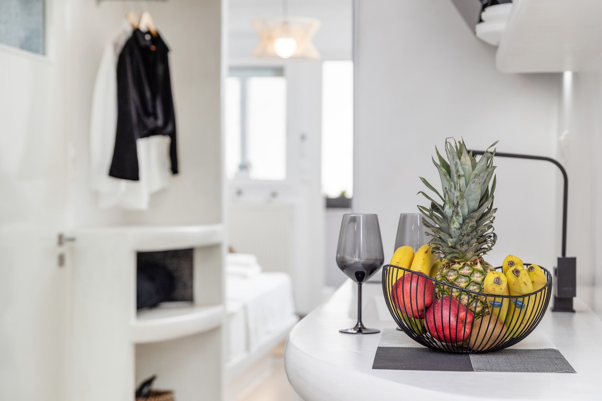 Lúxus íbúð staðsett í Naxos bænum, á svæðinu Grotta. Í nágrenninu er matvöruverslun og bakarí. Tíu mínútna göngufjarlægð frá höfninni, strætó- og leigubílastöðinni. Stutt í Apollon hofið, feneyska kastalann, gamla markaðinn og frá verslunarmiðstöð bæjarins þar sem eru barir og veitingastaðir.