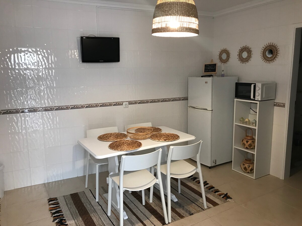 Lítið stúdíó í hjarta bæjarins Nazaré með hjónarúmi, með pláss fyrir 2 manns á fyrstu hæð. Tilvalið til að búa eins og heimamenn, njóta staðbundinna siða og hefða og njóta alls þess sem þessi bær hefur upp á að bjóða. Vegna miðlægrar staðsetningar er hægt að komast að allri þjónustu fótgangandi og hún er aðeins í 2 mínútna fjarlægð frá Nazaré-ströndinni. Eignin er mjög þægileg og fallega innréttuð.