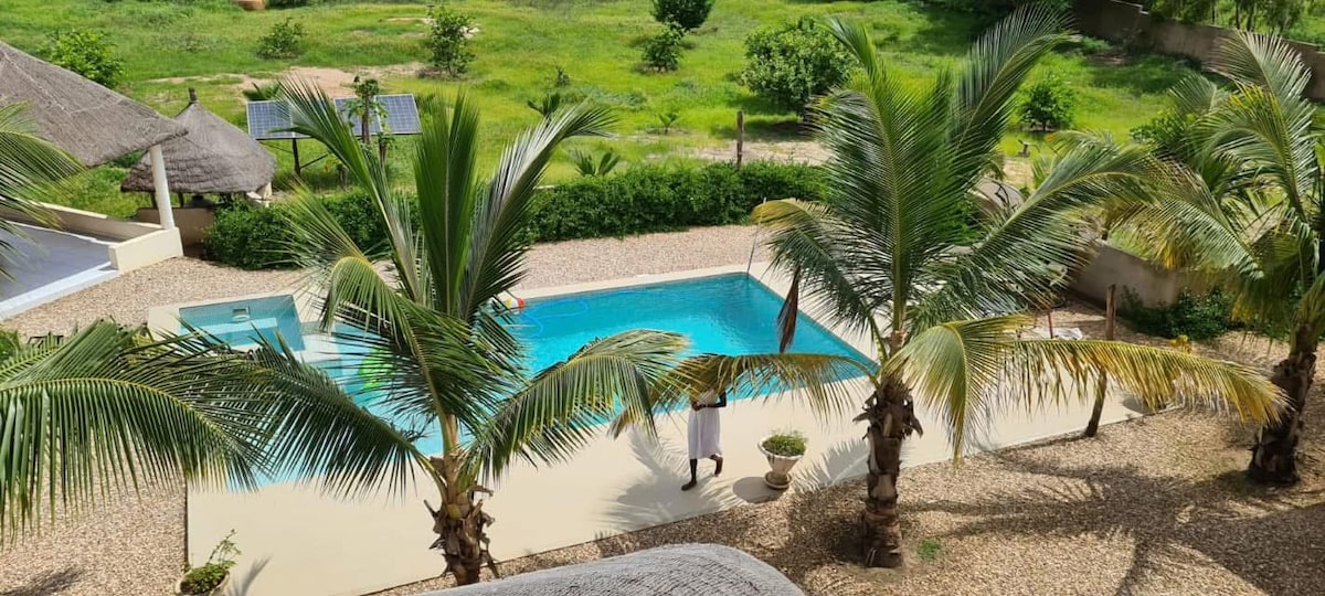 Villa spacieuse de 3 chambres à la décoration traditionnelle avec piscine privée. À la périphérie de la petite ville de marché de Mboro, sutu 100 km au nord de la ville capitale de Dakar, environ 2 heures en voiture. Belle tranquillité au milieu des oiseaux et des jardins tropicaux à seulement 3 km de la petite communauté de pêcheurs de Mboro Sur Mer. Idéal pour une escapade paisible. marché de Mboro, sutu 100 km au nord de la ville capitale de Dakar, environ 2 heures de Dakar. espace barbecu