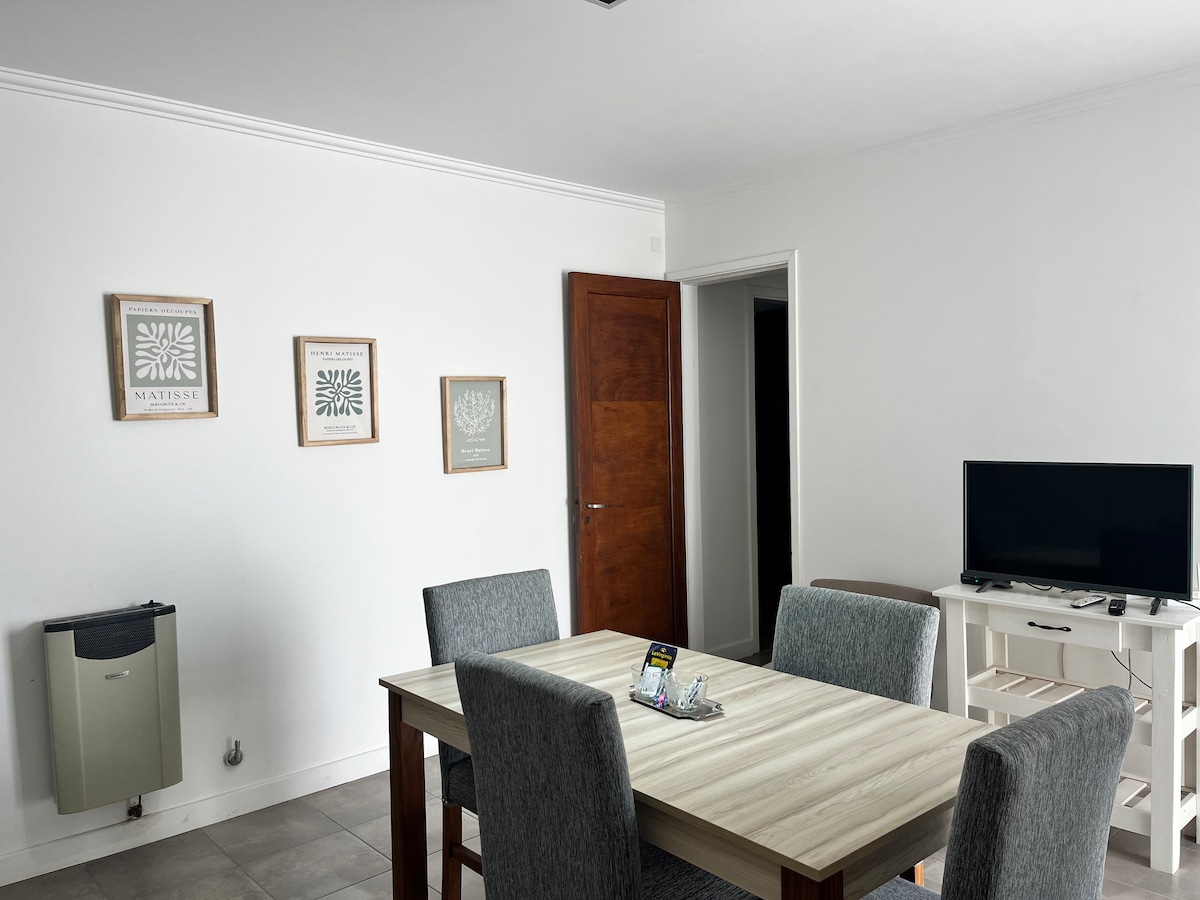 Ódýrt Monoambiente fyrir tvo á strandsvæðinu í Necochea. Við erum með ítarlegar tilvísanir í þjónustu okkar og vinalega meðferð til allra gesta. 300 megabæta þráðlaust net, flæði (ókeypis kapalsjónvarp og kvikmyndir) og 43 "sjónvarp. Á þessum árstíma endurnýjum við rúmföt, handklæði, viftur, borðbúnað og fleira. Staðsett bak við hús sem veitir öllum ró og öryggi. Tilvalið fyrir þá sem vilja þægilega eign á viðráðanlegu verði.
