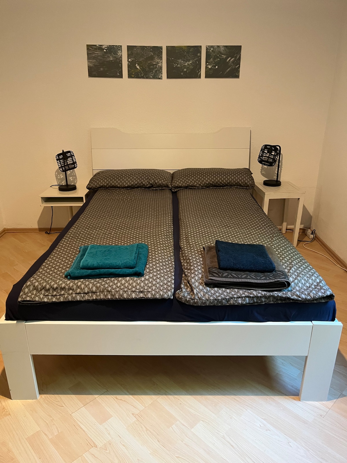 Björt, nútímalega innréttuð 45 m² íbúð með 2 svefnherbergjum bíður þín í Ofterdingen í næsta nágrenni við Steinlach. Íbúðin er hentugur fyrir 2 til 3 fullorðna eða fyrir 2 fullorðna og 2 börn. Notalega 9 m² svefnherbergið er með 1,40 m breitt rúm fyrir allt að tvo og fataskáp. Rúmföt eru til staðar. Hægt er að fá aukarúm fyrir smábarn ef þess er þörf.