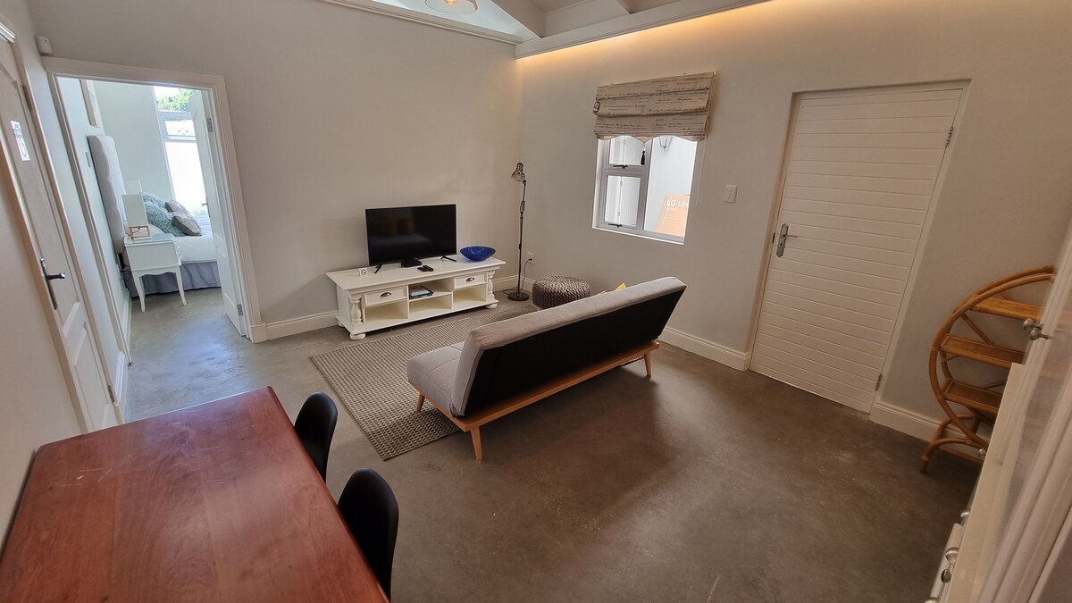 Njóttu glæsilegrar upplifunar með eldunaraðstöðu á þessu miðlæga heimili að heiman. Helst staðsett nálægt Grey Schools, sjúkrahúsum, Wembley Tennis Club & PE Golf Club. 1 svefnherbergi með 2 einbreiðum rúmum. Yndisleg setustofa með svefnsófa. Ókeypis þráðlaust net, DSTV og öruggt bílastæði. Reykingar eru bannaðar og gæludýr eru ekki leyfð. Húsnæðið er með eigin borholuvatnsveitu og er sólarorkuknúið. Camp barnarúm í boði gegn beiðni.