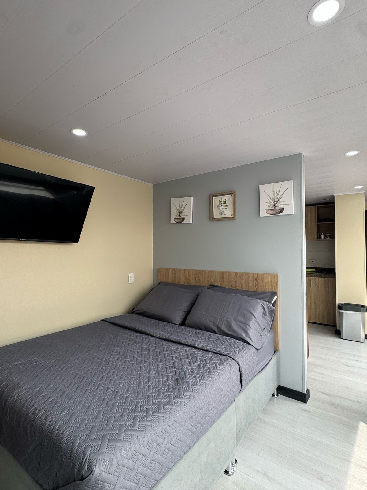 Relax in a modern and cozy loft — spotless and equipped with everything you need to feel at home. It features fast WiFi, a fully equipped kitchen, and a very comfortable bed, ideal for short or long stays. The building includes a shared rooftop terrace with an urban view, coworking spaces, and 24/7 reception. Located in Chapinero, a central and well-connected area of Bogotá. You’ll find great cafés, restaurants. Attentive and friendly communication throughout your stay.