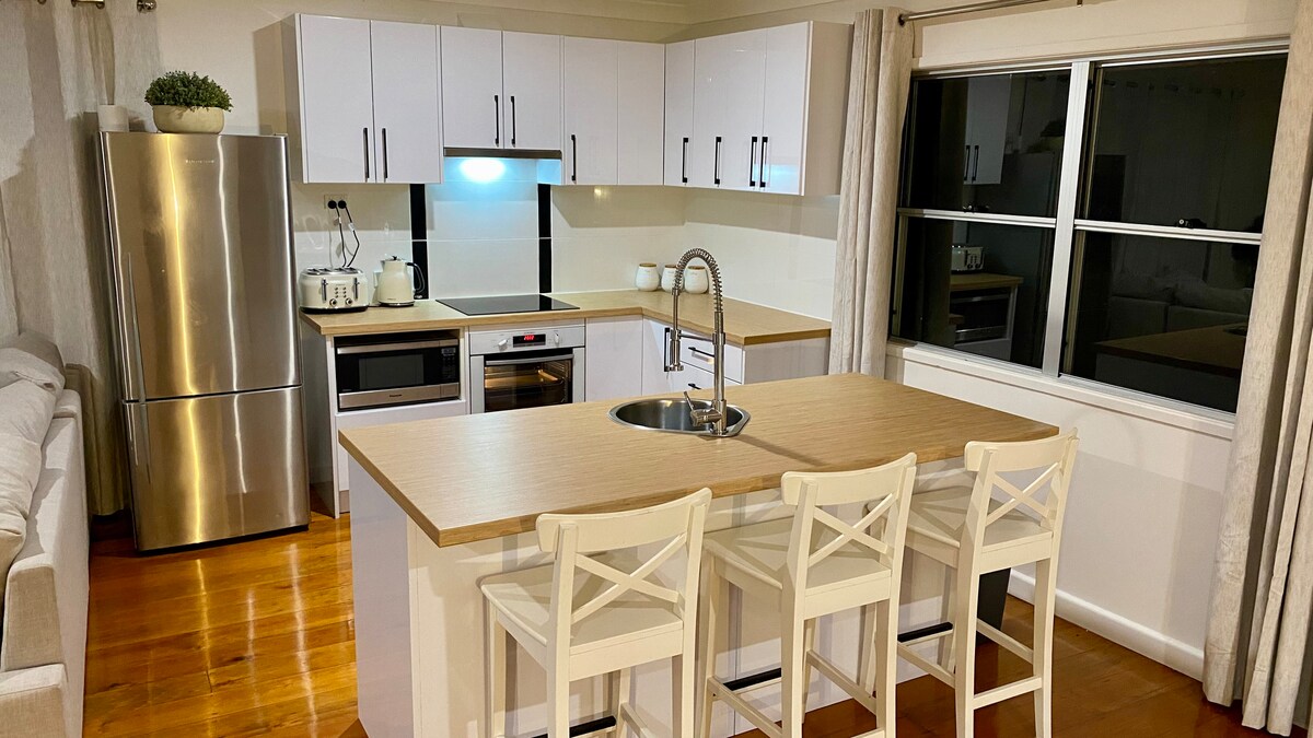 Palm Tree Cottage er einstakt og fallegt heimili með einu svefnherbergi í gróskumiklum hitabeltisgörðum. Það er aðeins 5 mínútna göngufjarlægð frá kaffihúsum, veitingastöðum og verslunum Gallery Walk. Eignin Þetta er ekki sameiginlegt heimili, þú átt allan bústaðinn. Þetta felur í sér fullbúið eldhús með Miele-tækjum, stóra samsetta borðstofu og setustofu, rúmgott svefnherbergi, verönd og heitan pott.