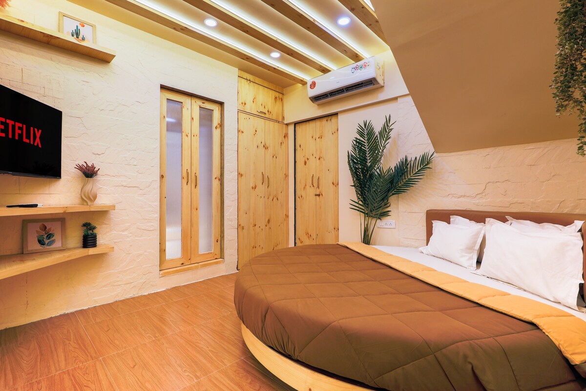 Verið velkomin í afdrep yðar í Chembur! Íburðarmikil stúdíóíbúð hönnuð fyrir þægindi og stíl — fullkomin fyrir vinnuferðamenn, pör og fjölskyldur. Njóttu notalegs rúms, nútímalegs eldhúss, hröðs þráðlaus nets og úrvals baðherbergis. Eignin er þægilega staðsett nálægt BKC, Bandra og er einnig einn af bestu tengdum stöðum í Mumbai, en samt í friðsælli hraðbraut. Tilvalið fyrir stutta dvöl, vinnuferðir eða helgarferðir. Heimili þitt að heiman í Mumbai.