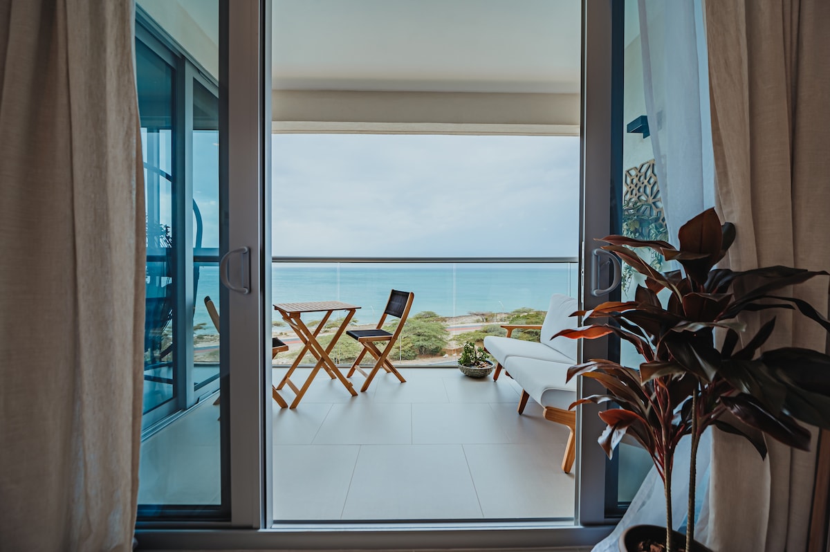 Falleg íbúð með sjávarútsýni á 6. hæð í glænýju Azure Residencies. Vistvæn hönnun með innblæstri. Staðsett á fallegustu ströndinni í Aruba - Eagle Beach. Glæsilegt útsýni yfir hafið úr stofunni, hjónaherbergi og rúmgóðar svalir. Azure Residencies eru með tvær endalausar sundlaugar, nuddpottur, leikjaherbergi, veitingastaður, verslanir, fullbúin líkamsræktarstöð og móttaka til að hjálpa til við dvölina. 5 mín ganga að Eagle Beach og 10 mín ganga að Palm Beach. Hreinn galdur!