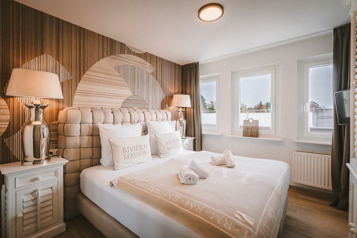 Welcome to this exclusive penthouse apartment from NORTH COAST Suites. Wonderfully equipped with everything you need for a magical stay. → Completely renovated and refurnished in 2024 with Riviera Maison! → Centrally in Hamburg-Rahlstedt → 1x bedroom with king-size bed (180x200cm) → 1x sofa bed (160x200cm) → Hotel bed linen → Fully equipped kitchen → NESPRESSO coffee machine (ECO) → Smart TV in the living room and bedroom → Dining table 4 guests → 1 bathroom with shower, washing machine