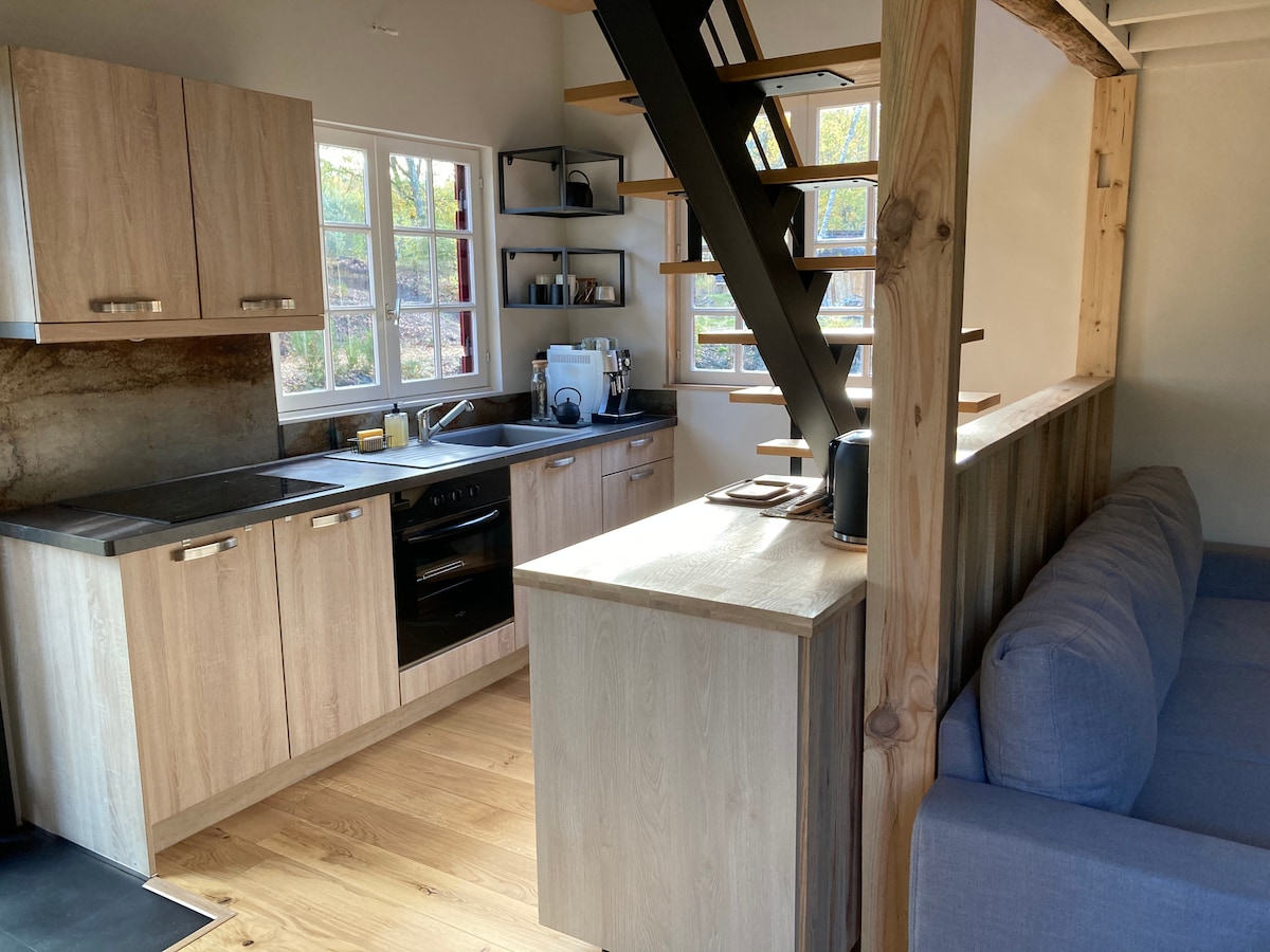 Nichée au cœur d’un jeune verger, cette cabane design en bois brûlé offre une expérience rare, entre architecture et nature. Volumes épurés, finitions haut de gamme, douche spectaculaire en verre de 3 mètres de haut à effet cascade, et vue ouverte sur le paysage jusqu’au coucher du soleil. Terrasse intimiste, bain nordique et brasero complètent ce lieu pensé comme une véritable suite en pleine nature.