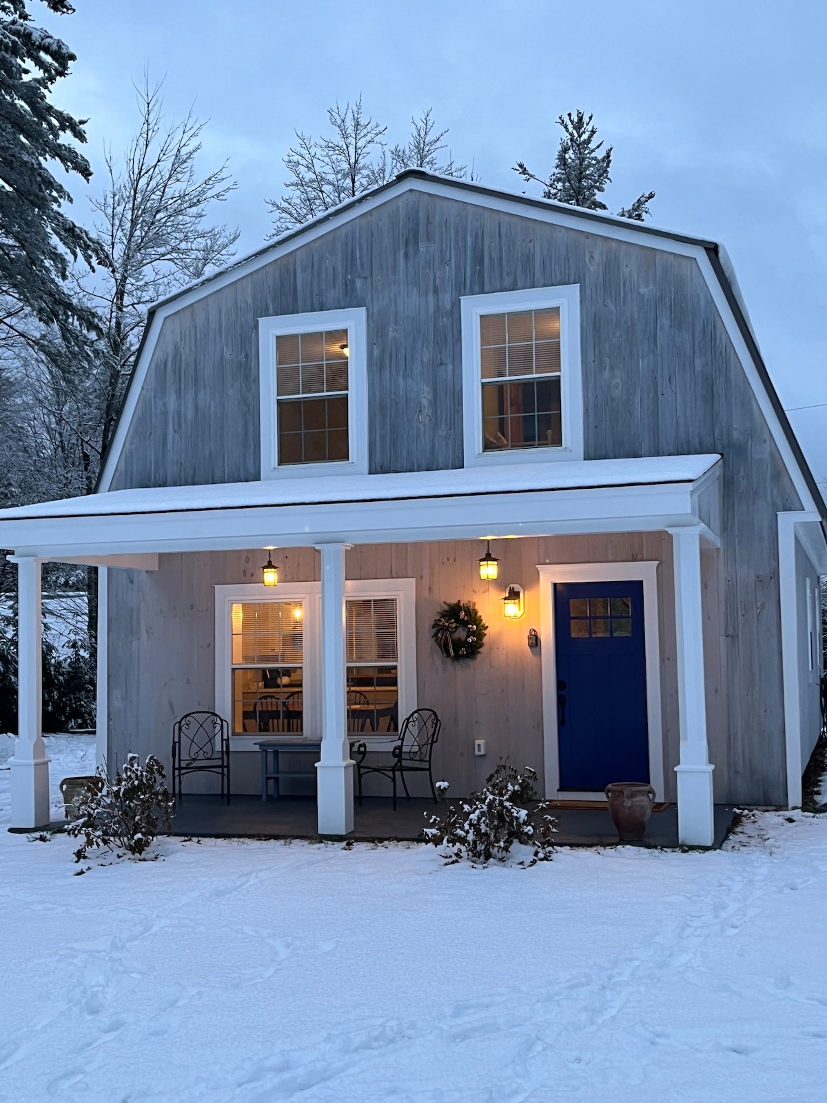 Notalegt, SVEITALEGT, kyrrlátt og skógivaxið umhverfi. Babbling lækur til einkanota, gasarinn, heitur pottur, memory foam dýna, notalegur huggari, fullbúið eldhús, nýþvegin rúmföt, SNJALLSJÓNVARP, þráðlaust net, hreint bað, kolagrill, nestisborð og eldstæði. Mínútur í verðlaunaða veitingastaði, skíði, sleðaferðir og alla áhugaverða staði. 1/2 míla í Black MT, hestaferðir/hestaferðir, skóflupöbb, bóndabás o.s.frv. Gönguferð, snjóskór (2 fylgir), skíði í baklandi, sleði frá ÚTIDYRUNUM hjá þér. 2 tvíbreið rúm og samanbrotið fúton.