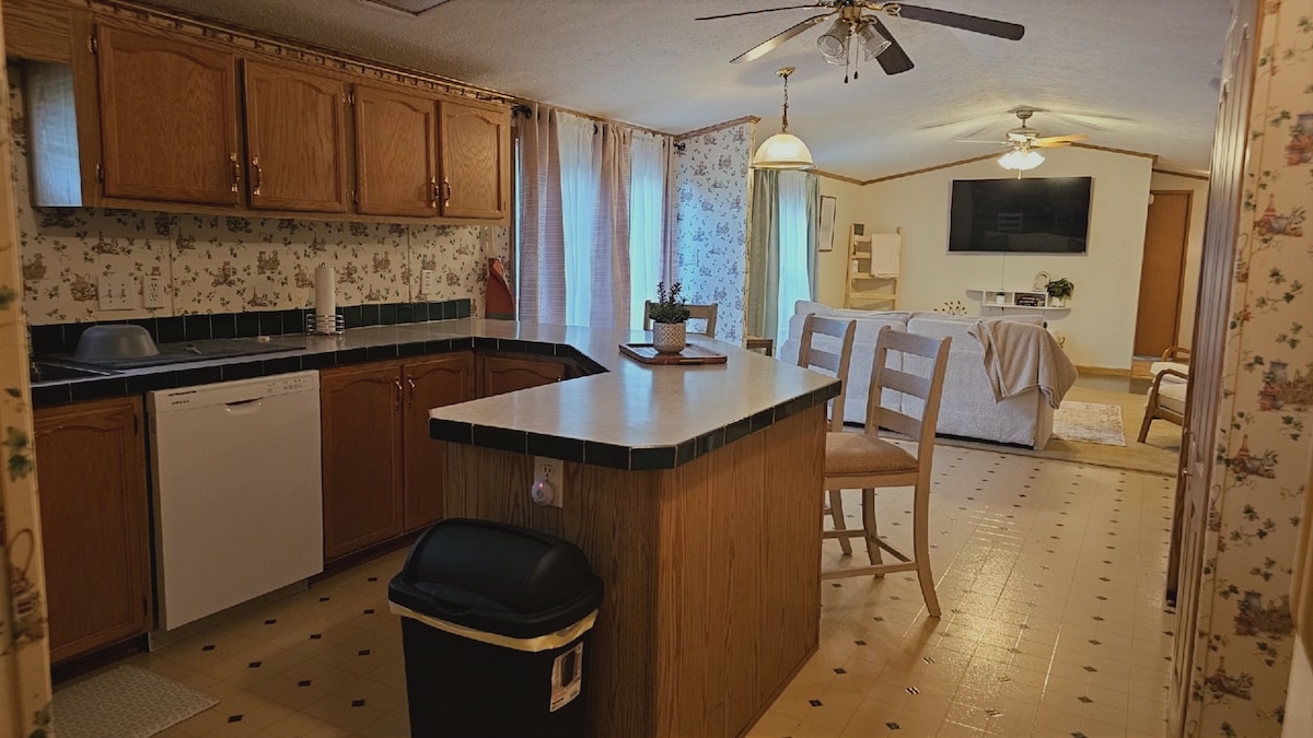 Þetta 110 hektara litla heimili við vatnið tengir þig aftur við náttúruna á meðan þú slakar á í heita pottinum. Í nálægum fylkisgarði eru meira en 14.000 hektarar með stöðuvatni og slóðum. Þetta litla heimili er þar sem náttúran mætir lúxus!! Rafmagnsarinn tekur á móti þér á meðan þú hvílist og horfir á uppáhaldsþáttinn þinn. Á staðnum er eldpitt og kolagrill ásamt eldhústækjum í fullri stærð. Eigandi býr á lóðinni en engin sameiginleg aðstaða. Þetta hús er með stjörnuhlekk en ekki tryggt.