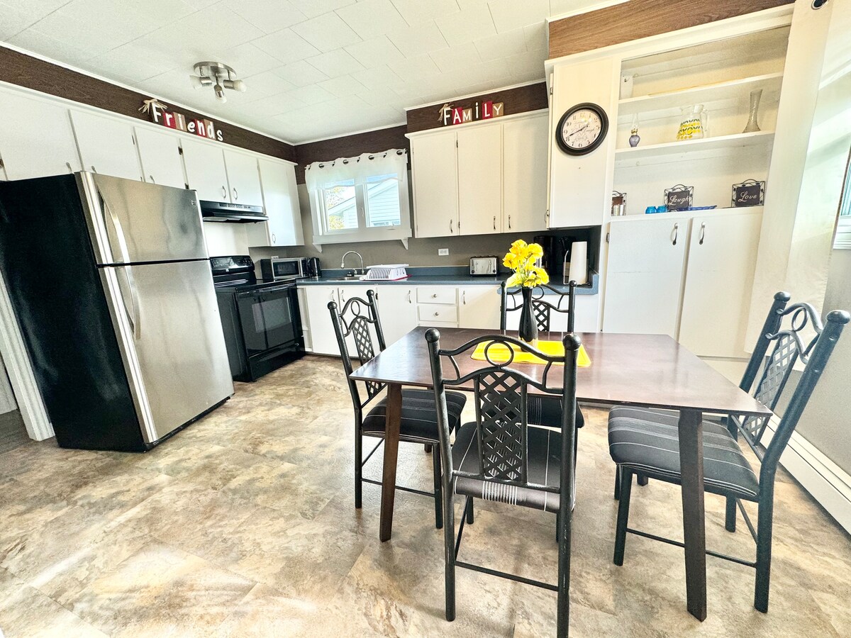 Algjörlega uppgert 2 herbergja hús með sjávarútsýni. Bæði svefnherbergin eru með queen-size rúm. Er með fullbúnu baði ásamt 1/2 baði með þvottahúsi. Stutt gekk að Top Of Twillingate gönguleiðum með öðrum gönguleiðum um bæinn okkar. Aðeins nokkrar mínútur frá bátaferðum Skipper Jim og stjörnuathugunarstöðinni. Orlofsheimilið okkar er aðeins 3 km frá miðbænum. Við bjóðum upp á meginlandsmorgunverð og mælum með öllum hápunktunum í bænum okkar.
