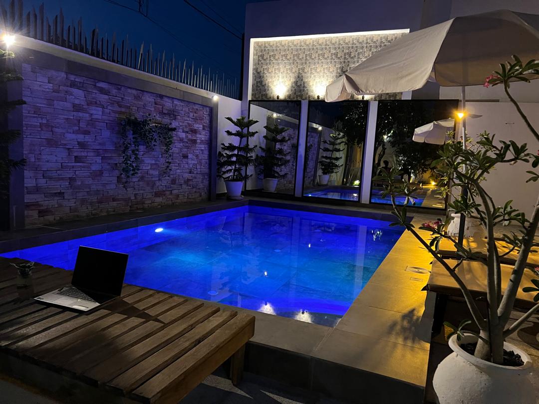 Ce logement élégant se situe à proximité des sites incontournables de la région : village artisanal, lagune de la Somone, Réserve de Bandia, parc exotique, Delta du Saloum… A 2 minutes à pied de la plus belle plage de Saly Obama Beach, il offre tout le confort moderne. Le studio se situe sur notre propriété, accès piscine, jacuzzi à température ambiante (accès privatisé pendant votre séjour) pool house avec cuisine, BBQ, transats et jardins.
