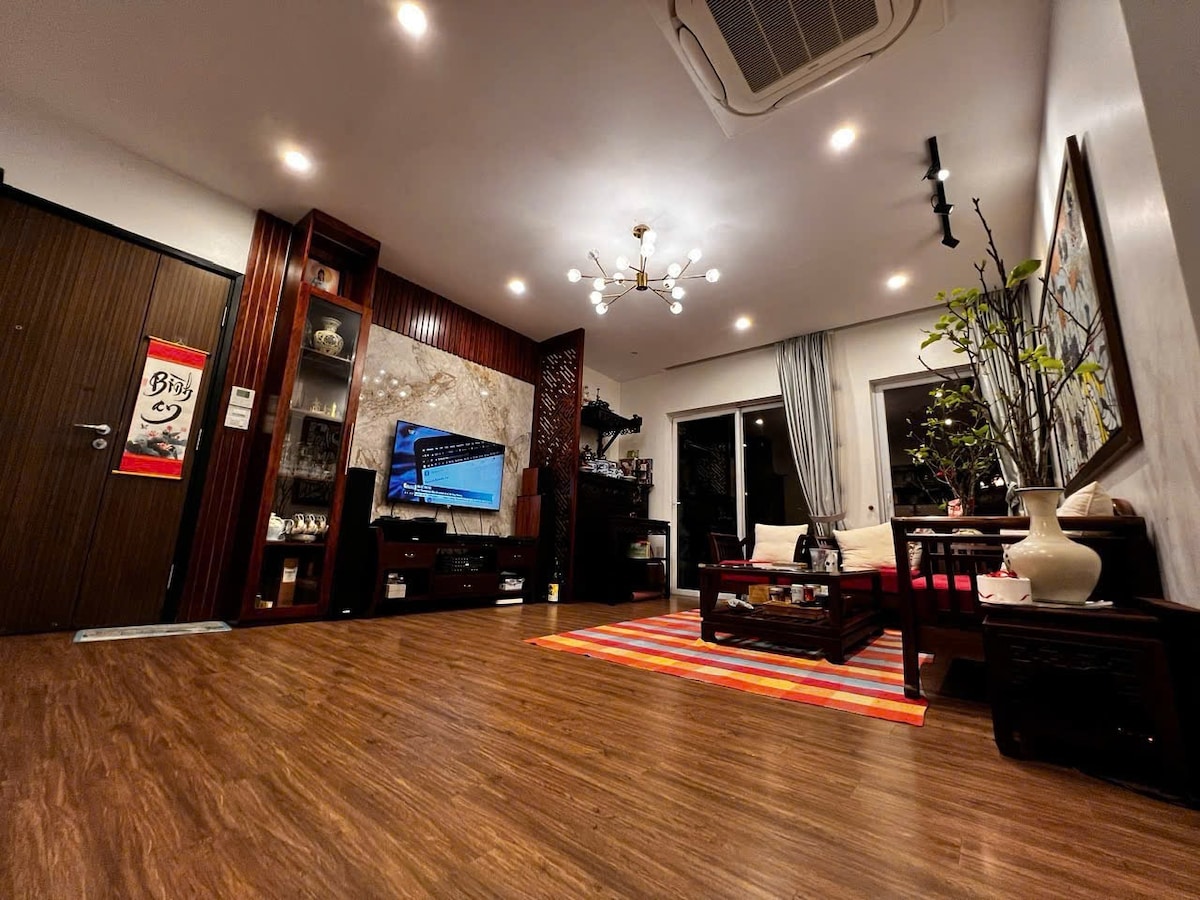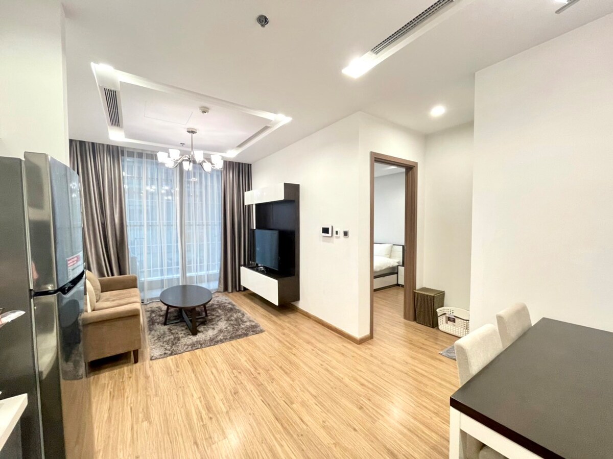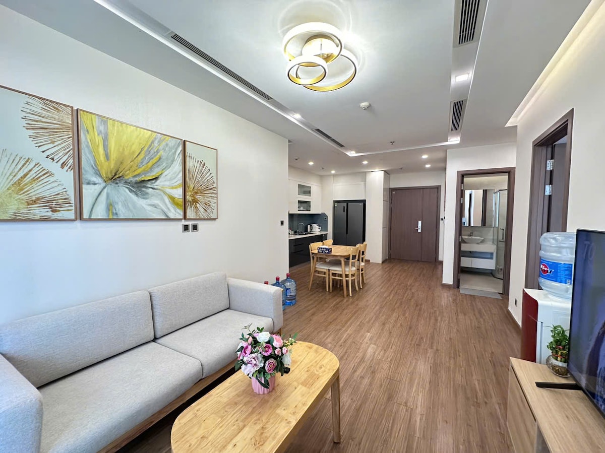 Kæru gestir! Byggingin krefst nú andlitsskilríkja til að komast inn og því tók ferlið nokkurn tíma. Andlitsskilríki taka nokkra daga eða viku og því tökum við aðeins á móti gestum sem bóka í að minnsta kosti EINN MÁNUÐ í þessari íbúð. Takk fyrir skilning þinn. Íbúðin okkar snýr að aðalgötunni og er staðsett á fimmtándu hæð í Vinhomes Metropolis M2 byggingunni. Mánaðargestir fá ókeypis aðgang að líkamsræktinni, sundlauginni, vikulegum þrifum... o.s.frv.