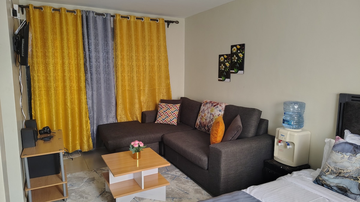 Verið velkomin á heimili þitt í Naíróbí, fjarri heimilinu! Þessi stílhreina og fullbúna íbúð er fullkomlega staðsett beint á móti Junction Mall á hinu líflega Riara/Kilimani-svæði. Verslanir, veitingastaðir, afþreying og nauðsynjar eru við dyrnar. Íbúðin er með fullbúna líkamsrækt, fallegt útsýni yfir sólsetur og borg, sundlaug, snjallsjónvarp, Netflix, hratt áreiðanlegt þráðlaust net, glæsilegar nútímalegar innréttingar, öryggi allan sólarhringinn og ókeypis bílastæði. Auðvelt aðgengi að Prime Places eins og JKIA o.s.frv.