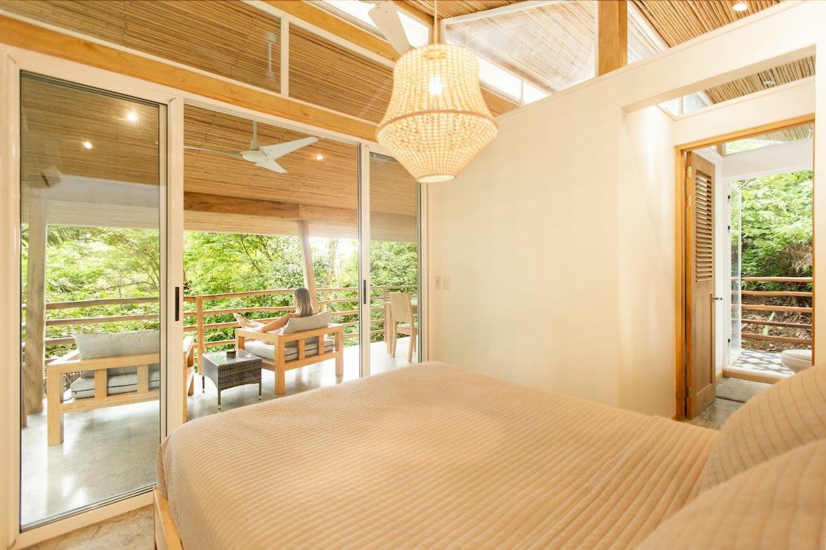 Slakaðu á í einu af lúxus trjáhúsunum í Kosta Ríka. Vaknaðu við fuglasöng og apa sem eru hengdir upp yfir frumskóginum. Gæti þetta orðið meira sjarmerandi? Slappaðu af í kringum saltvatnslaugina með sjávarútsýni. Kynnstu fegurðinni sem svæðið hefur upp á að bjóða. 5 mín að glæsilegum ströndum. Þetta er sannarlega töfrandi eign með háhraða þráðlausu neti! Við erum með tvö trjáhús sem hægt er að bóka saman eða hvort í sínu lagi. Auk þess er hægt að bóka aðalhús til að taka á móti samtals 8 manns!
