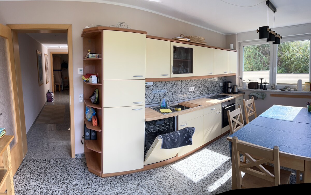 Við leigjum út nútímalega 84 m² risíbúð með 4 herbergjum og 5 rúmum (+ 1 barnarúmi) í húsi okkar í útjaðri hansaborgarinnar Rostock. Krummendorf er lítið og fallega staðsett þorp sem er hluti af borginni. Beint fyrir aftan húsið er Oldendorfer Tannen (lítill skógur) og beint á eftir byrjar Warnow. Hægt er að komast hratt í miðborgina og Warnemünde. Bílastæði og grillaðstaða (tjald) eru í boði.