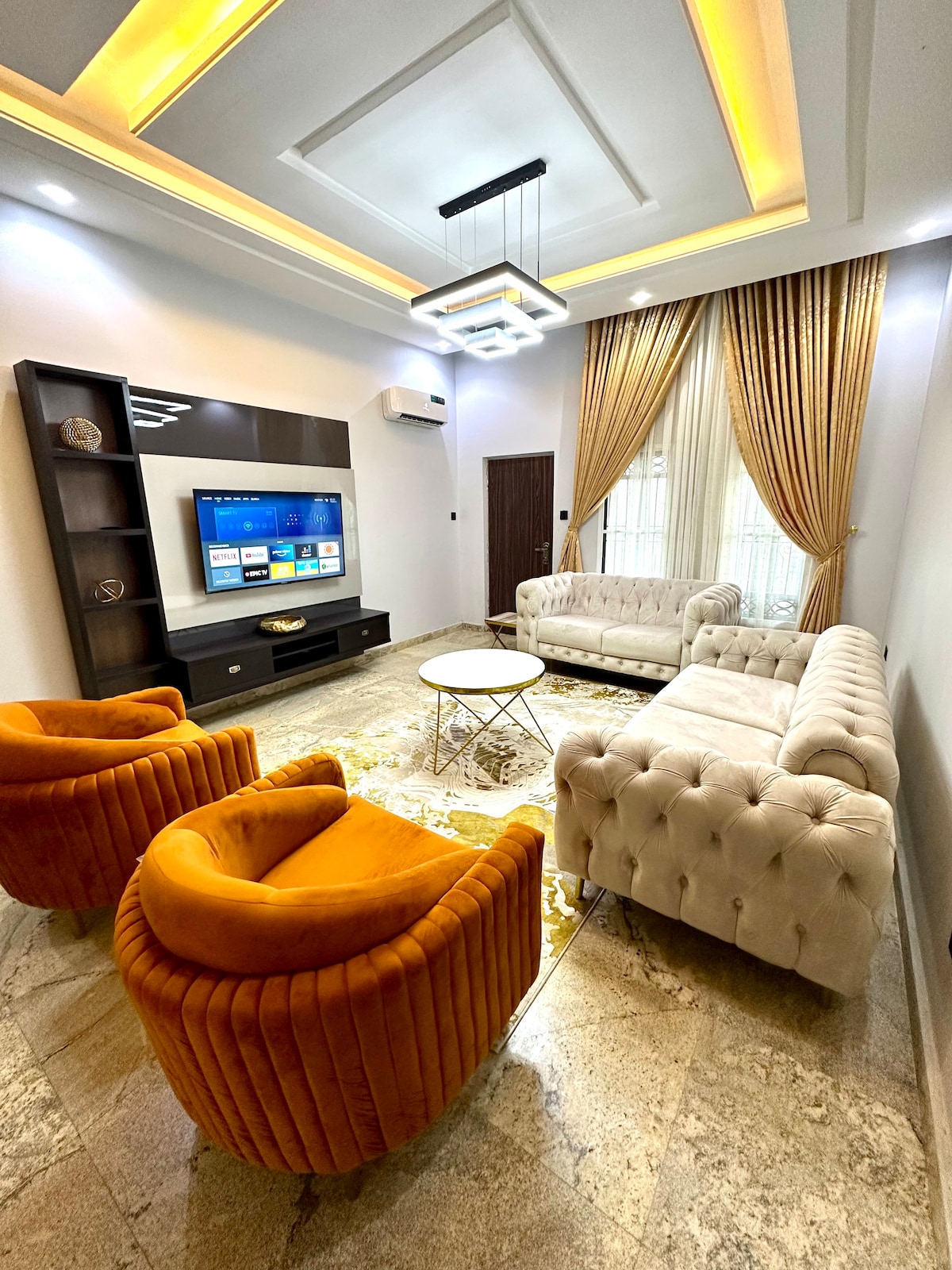 Íbúðin okkar er einstök, rúmgóð, fjölskylduvæn og vel innréttuð heimili í tjöru, öruggu og afgirtu búi í Abuja. Auðvelt er að komast að svæðinu hvert sem þú hyggst skoða í Abuja. Mjög nálægt hraðbrautinni án umferðarvandamála á svæðinu. Umhverfið er stórfenglegt með einstakri byggingarlist og heimilum. Íbúðin er með hratt ljósleiðaranet, Netflix, hreinu vatni, daglegri ræstingaþjónustu, borðtennis, loftkælingu, snjall-sjónvarpi og friði.