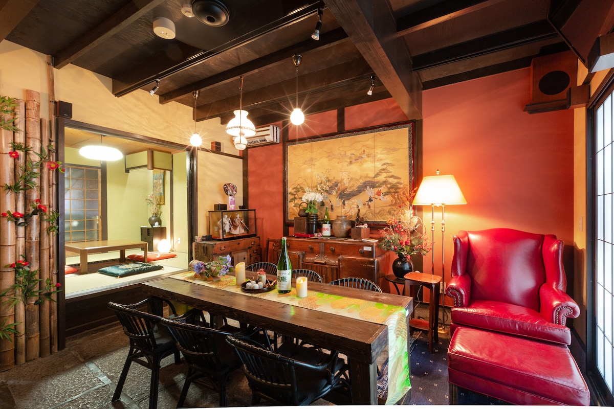 Machiya Inn「Crimson」hefur verið breytt í gistingu með leyfi sem rúmar allt að 4 manns. Við leigjum hana aðeins út til eins hóps í einu. Þetta þýðir að þið hafið allt húsið út af fyrir ykkur. Fullkomlega þægilegt fyrir pör og hentar best fyrir fjölskyldur eða hópa. Við höldum nokkrum klassískum Kyoto-ytri- og innanhússmunum, vestræn þægindi eins og rúm, eldhúskrókur, borðstofuborð og stólar eru einnig vel innréttaðir. Njóttu ferðarinnar með því að upplifa stemninguna í Kyoto!