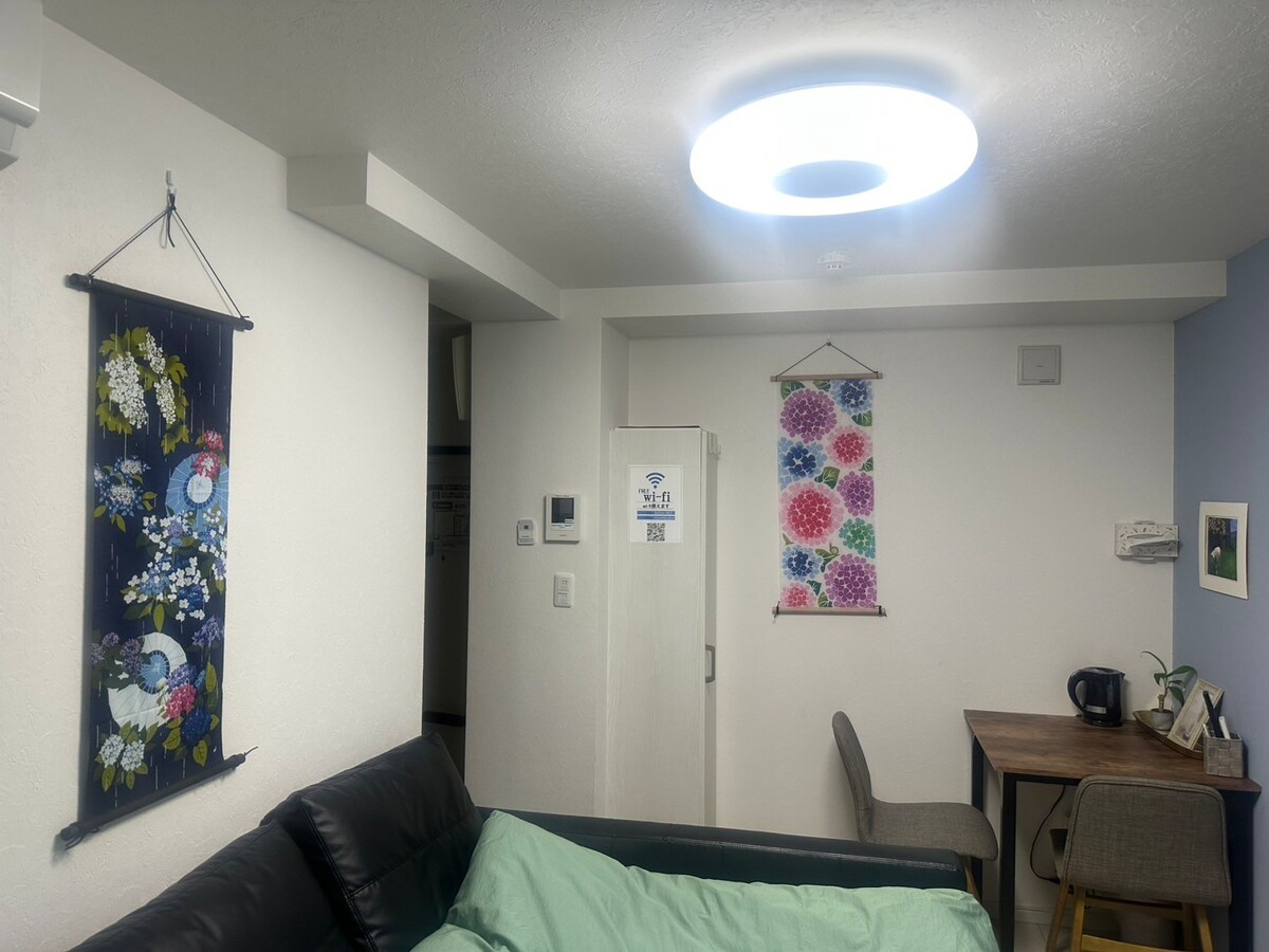 ★Þægilega staðsett nálægt ONIGOE Apartment "Urban-oriented Relaxation Stay" stöðinni sem er tilvalin miðstöð fyrir skoðunarferðir, verslanir og viðskipti. ○Frábær staðsetning 7 mínútna göngufjarlægð frá JR Shimousa Nakayama stöðinni, 15 mínútur frá JR Hon Yawata stöðinni og 4 mínútur frá Keisei Onigoshi stöðinni. 30 mínútur til Disneylands, 65 mínútur til Narita-flugvallar og Haneda-flugvallar, beinn aðgangur að Akihabara og Shinjuku. 5 mínútna ganga að Colton Plaza Shopping CenterÍ boði eru 100 meðal- og kvikmyndahús fyrir þægilegar verslanir og afþreyingu. ○Vel útbúið Skipuleggðu rúm og sófa á skilvirkan hátt í stúdíóíbúð til að fá sem mest út úr eigninni um leið og hún er lítil.Hámark 2 manns leyfðir Fullbúið með háhraðaneti, skjávarpa og skrifborði fyrir fjarvinnu og netnám. Það er eldhús, ísskápur og örbylgjuofn til að bjóða upp á sjálfsafgreiðslu.Einnig er til staðar bað- og sturtusalerni fyrir þægilega dvöl. Að koma til móts við ○fjölbreyttar þarfir Býður upp á þægindi borgarinnar og rólegt umhverfi til að slaka á.Þessi aðstaða er undirstaða fyrir skoðunarferðir, viðskipti og próf og rúmar fjölbreyttar sýningar. ○Leggðu á vegginn til að breyta honum í lítið leikhús. Skoðaðu aðstöðuna í kring○ á leiguhjóli.