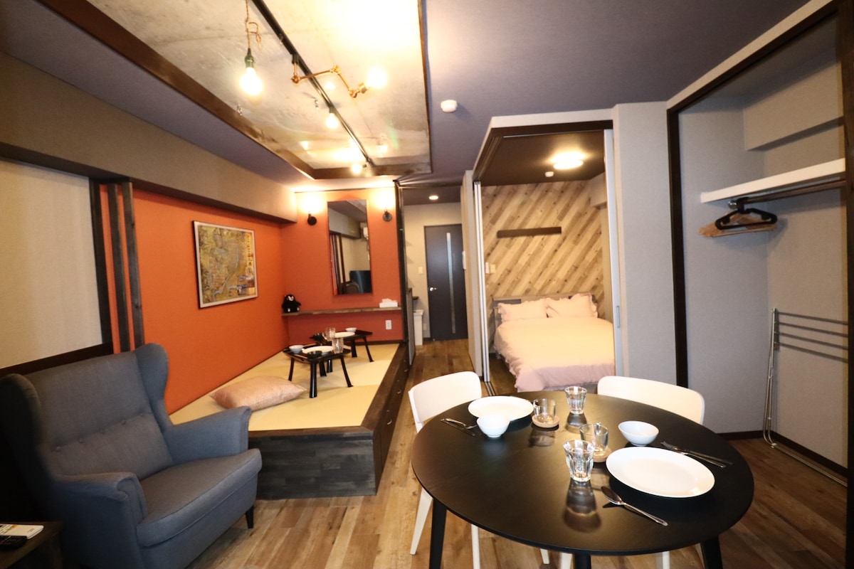 熊本城徒歩10分|レンタカー有|無線LAN|快適ワンルーム37㎡|Modern Room 203