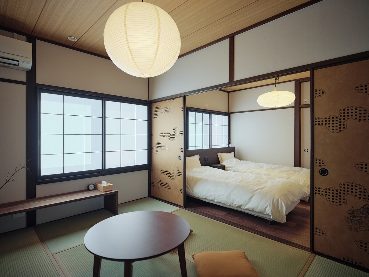 Located near Kumamoto Castle (5 mins. walk), Sakuramachi bus terminal (10−15mins. walk). Public tram stations, convenience stores are within 5 mins. walk. This is an independent small over 100 Y.O. house with WI-FI, TV, towels, kitchen, shower, washing machine. Bed room and sunny living room for remote work on the 2F. There are JP antique cafes, restaurants and some lovely old buildings in this area. Pls consult early/late check in/out or blocked dates booking. No parking.
