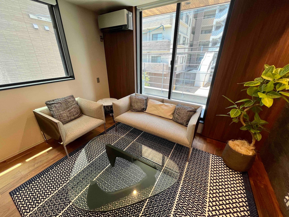 NÝTT OPNAÐ! Rúmgóð nýbyggð í miðborg Fukuoka. Leigja má alla íbúðina í einn dag. Nintendo Switch 2 til staðar