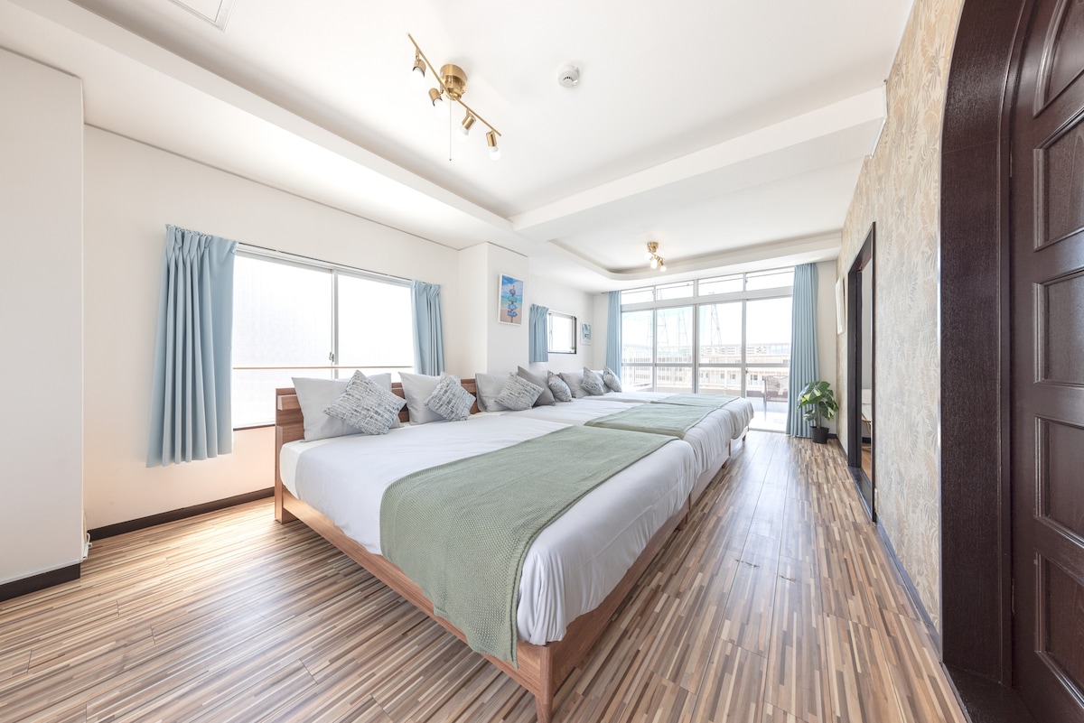 Staðsett í rólegu íbúðahverfi í 5 mínútna göngufjarlægð frá Nishishin-stöðinni. Þetta er mjög þægilegt herbergi með aðgang að ýmsum Fukuoka ferðamannastöðum, þar á meðal miðbæ Fukuoka! Það eru 6 svefnherbergi og 10 lúxus hjónarúm svo að þú getur átt rúmgóða og afslappandi dvöl! Rúmið verður lúxusrúm undir Seki húsgagnamerkinu svo að það er frábært fyrir svefninn! Það hjálpar þér að hvílast frá skoðunarferðum og ferðalögum. Hámark 20 manns í boði Fullbúin líkamsræktarstöð á heimilinu. Engar lyftur. Í 5 mínútna göngufjarlægð frá Nishishin-stöðinni 5 mínútna göngufjarlægð frá Nishishin-verslunargötunni Hverfisverslun (Seven Eleven Family Mart) 2 mín. ganga Matvöruverslun í 2 mínútna göngufjarlægð Don Quijote í 5 mínútna göngufjarlægð Mizuho PayPay Dome Fukuoka 8 mín með leigubíl Tenjin Station 7 mín með lest Hakata stöð 12 mín með lest 18 mín lestarferð til Fukuoka flugvallar 18 mín með leigubíl Canal City Hakata 13 mín með leigubíl Góður aðgangur að miðborg Fukuoka! Aðgangur að Fukuoka-flugvelli, Hakata-stöðinni og Tenjin-stöðinni þarf ekki að flytja með lest! Þráðlaust net í boði. Lengri gisting er einnig velkomin! Vinsamlegast láttu okkur vita ef þú hefur einhverjar spurningar eða beiðnir! Ég hlakka til bókunarinnar þinnar♪
