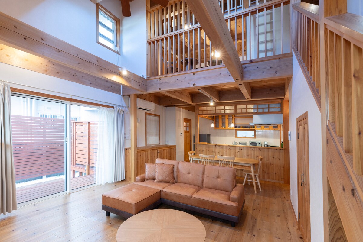 Verið velkomin í Fukuoka! Þetta er nýopnað herbergi sem rúmar◎ allt að 10 manns með frábæru aðgengi, í 5 mínútna göngufjarlægð frá næstu Nishishin stöð og í 15 mínútna akstursfjarlægð frá Tenjin-stöðinni.Þetta er rúmgott 100 fermetra hús sem hægt er að leigja í heild sinni! Við erum með ókeypis bílastæði fyrir einn bíl fyrir framan einbýlishúsið og því er einnig mælt með því fyrir gesti sem koma á bílaleigubíl. Þægileg staðsetning í 1 mínútu göngufjarlægð frá matvöruverslun og í 4 mínútna göngufjarlægð frá matvöruverslun.Þú getur gengið að næstu Nishishin stöð á 5 mínútum. Það er einnig í 7 mínútna göngufjarlægð frá Nishishin-verslunargötunni sem er full af veitingastöðum, daglegum nauðsynjum, verslunum nálægt lífinu og glæsilegum kaffihúsum! Það er eldhús til staðar svo að þú getir eldað þínar eigin máltíðir! Þar er einnig þvottavél með þurrkara svo að hún er fullkomin fyrir langtímagistingu. Þú getur notað háhraða þráðlaust net meðan á dvölinni stendur!