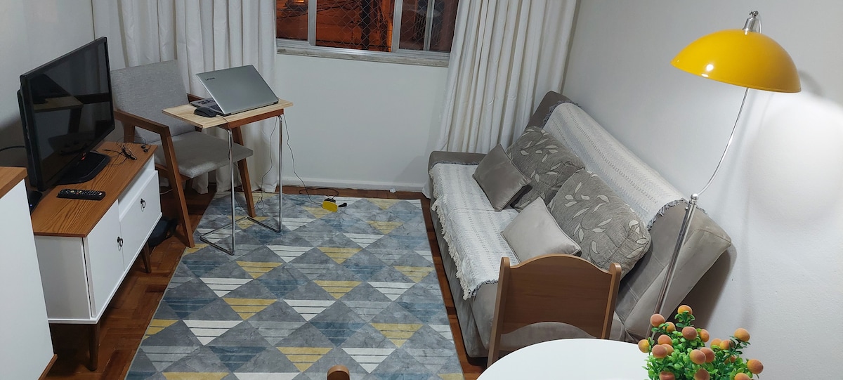 Njóttu frábærrar dvalar í heillandi og hagnýtri íbúð okkar sem staðsett er í hjarta Ingá, Niterói. Eignin er fullkomin fyrir pör, litlar fjölskyldur eða vinahópa sem leita að notalegu og vel staðsettu afdrepi með forréttindaútsýni yfir ströndina í örvunum.