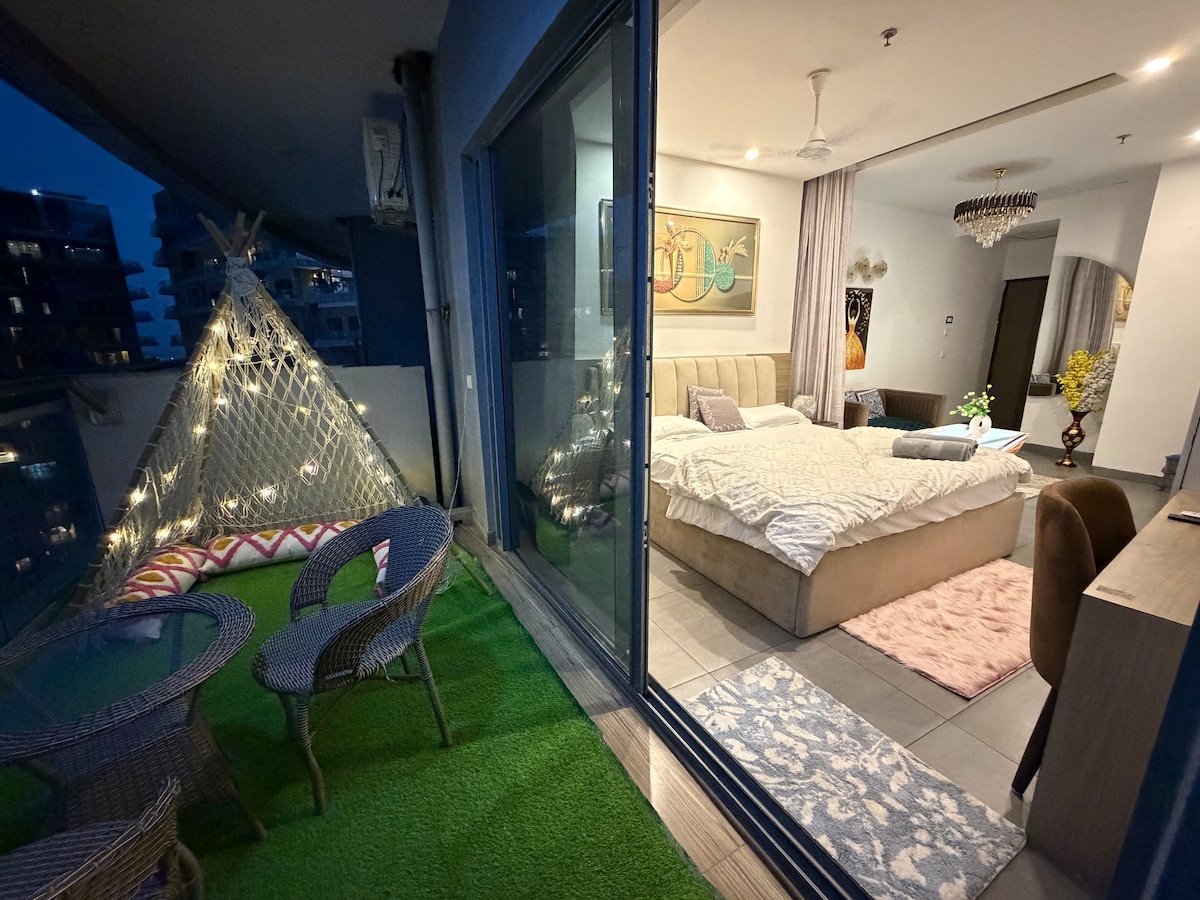 Lúxusstúdíóíbúð með svölum og borgarútsýni | Noida |