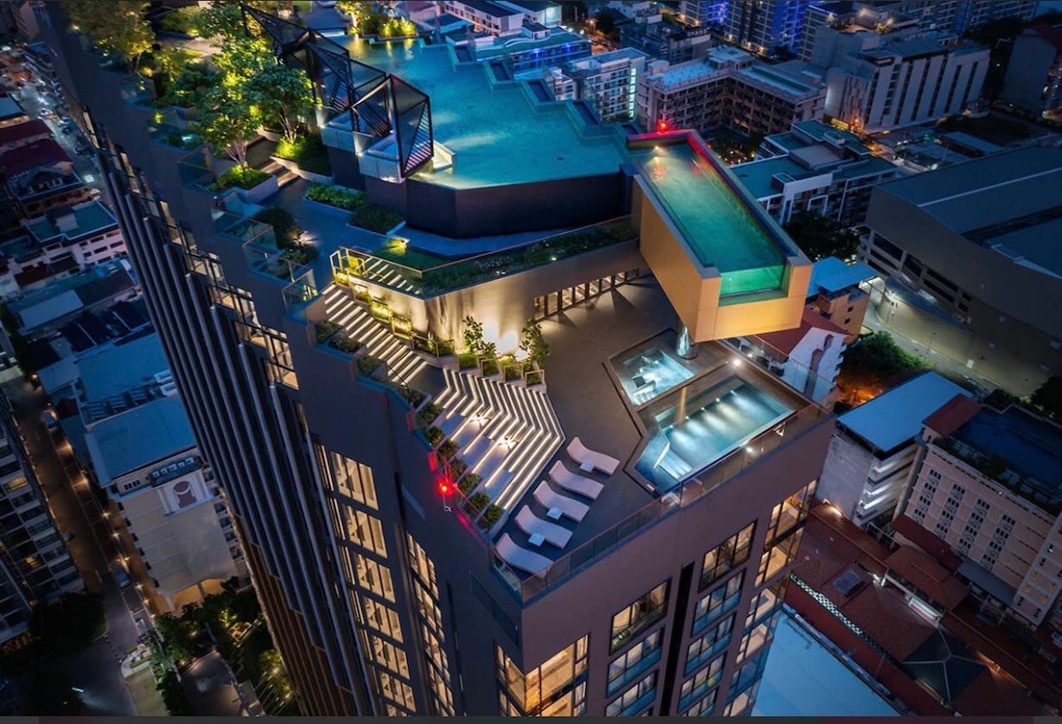 Upplifðu The Edge Central Pattaya, nútímalega háhýsingu í hjarta borgarinnar. Njóttu útsýnisins yfir Pattaya-flóa og borgina frá endalausri lauginni á þakinu. 250 metra frá Pattaya-strönd. Kaffihús, veitingastaðir, verslanir, barir og næturlíf eru í göngufæri. Þessi stílhreina íbúð er fullkomin fyrir pör, einstaklinga og stafræna hirðingja. Hún er með hröðu þráðlausu neti, nútímalegri innréttingum og greiðum aðgangi að almenningssamgöngum. Það besta sem Pattaya hefur upp á að bjóða er í göngufæri.