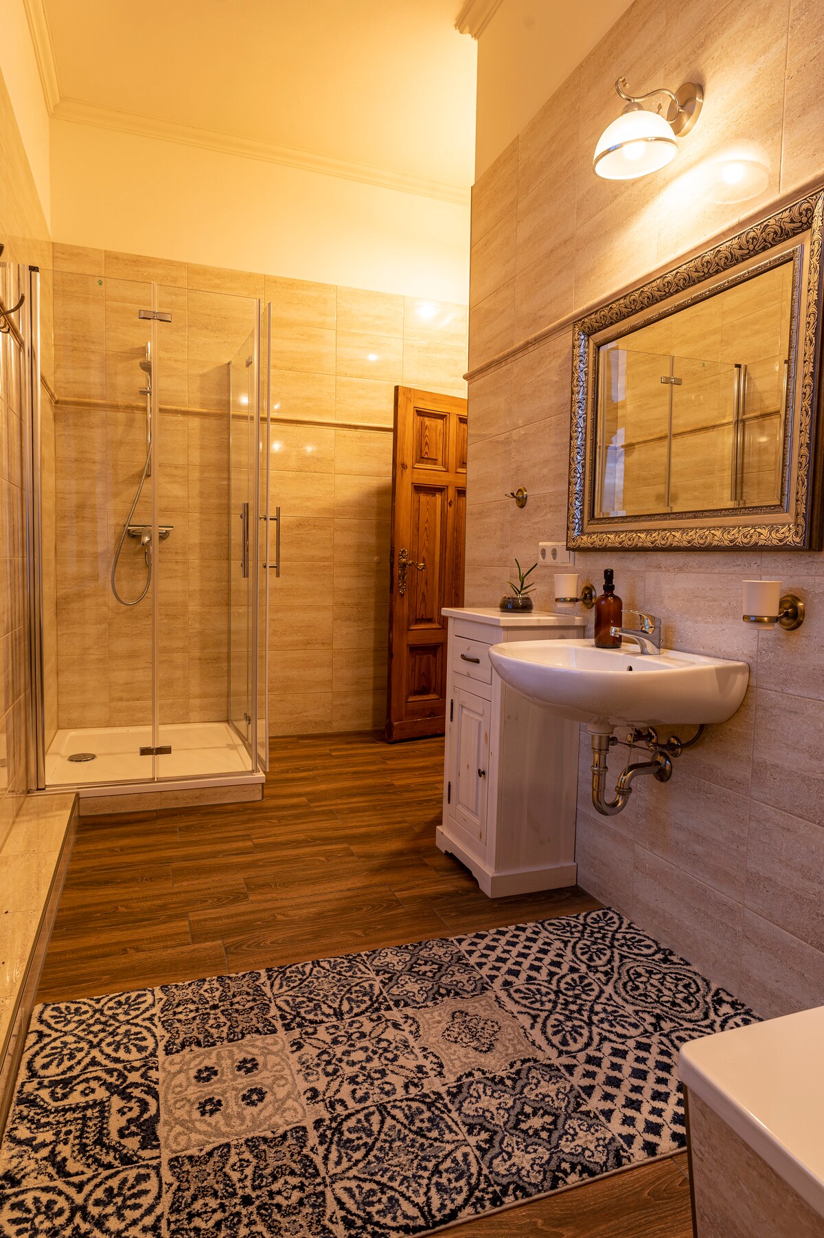 Fallega innréttuð 1 herbergja íbúð með 20 fm stofu/svefnherbergi, sambyggðum eldhúskrók, aðskildu baðherbergi og litlum inngangi er á jarðhæð í herragarðshúsi sem byggt var á fyrri hluta 19. aldar á friðsælum stað með útsýni yfir þorpstjörnina. Smábærinn Lichtenberg er ríkisrekinn dvalarstaður í miðju Feldberg-vatnalandslaginu. Einn fallegasti baðstaður svæðisins er í 1,5 km fjarlægð frá skóginum við Breiten Luzin.