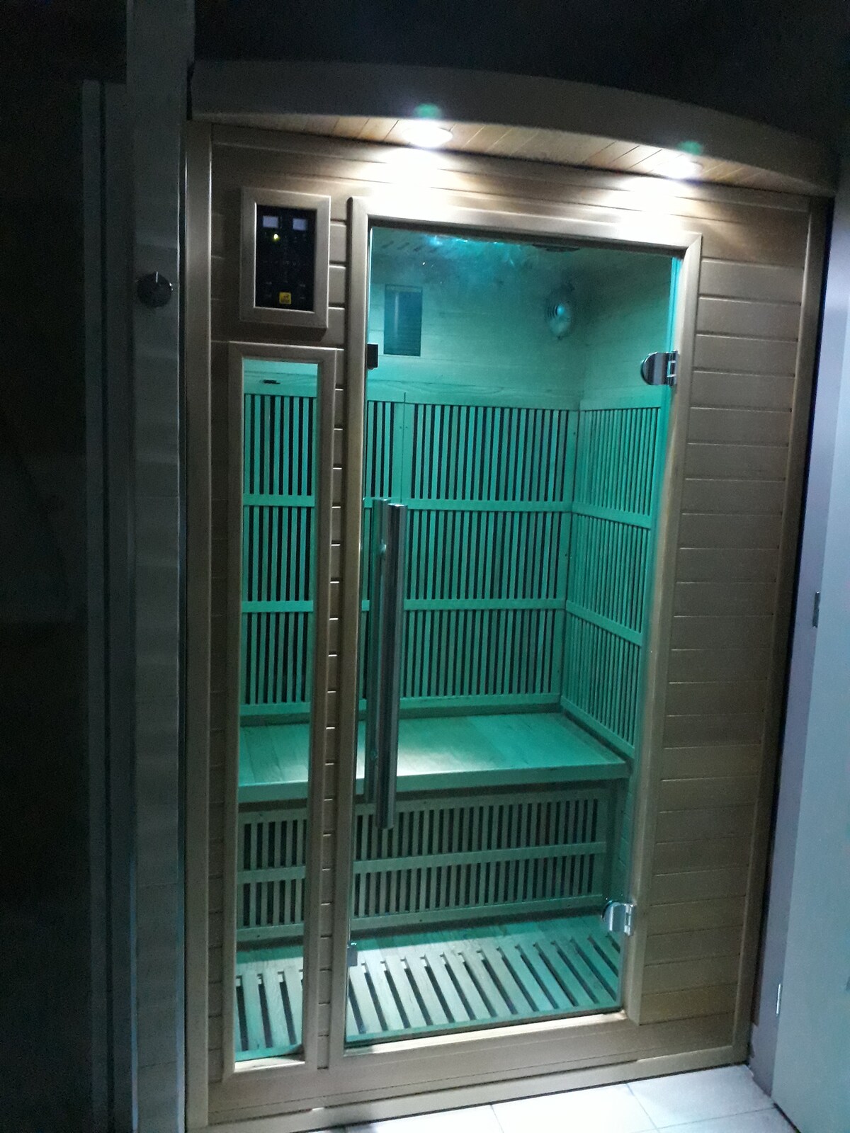 Gistihúsið er með eldhús með uppþvottavél, litlum ofni, örbylgjuofni, Senseo-kaffivél, ísskáp og vitro helluborði. Baðherbergi með sturtu. Aðskilið salerni. Svefnherbergi með 2x80 rúmi og rúlluhlerum. Svefnsófi, pelletsofn, sjónvarp og ókeypis þráðlaust net. Slökunarpláss í herbergi við hliðina á kofanum með gufubaði og jacuzzi fyrir 4 manns innifalið í verðinu með ótakmörkuðum og einkaaðgangi.