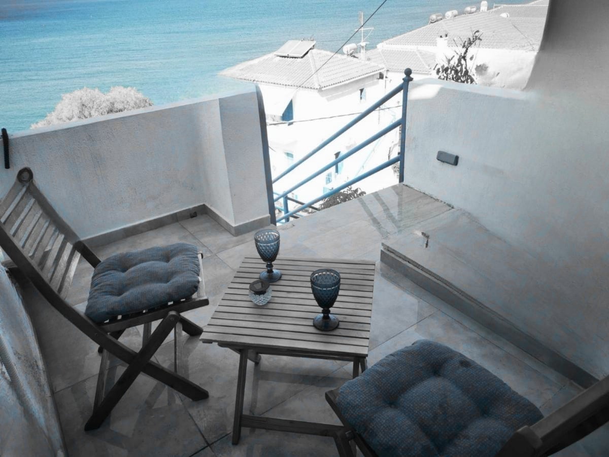 This is a 12sq.m. independent studio and It has a double build in bed. n the studio there is also a fully equipped kitchen with a coffee maker.There is a small balcony where you may enjoy your coffee watching the ocean. The studio is located in a quiet area at the beachfront of Eressos and it is around 10metres from the water .Also its 50metres away from the first taverna and shops.