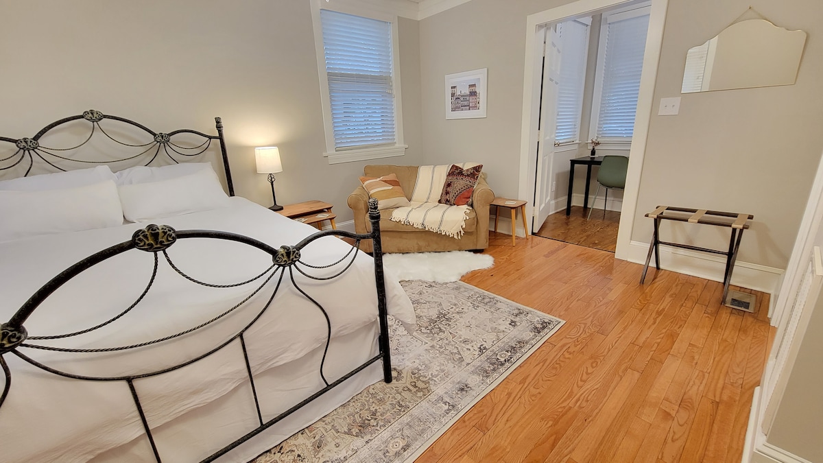This is a large beautiful second floor suite with a queen size bed that opens onto a huge veranda. The suite has a private entrance, bath and large sitting room. The home is located in historic Hayes Barton, close to downtown Raleigh and Glenwood South district. Hayes Barton is a safe, shady historic neighborhood with cafes, restaurants and breweries within walking distance. Quiet, not good for parties. https://abnb.me/e99n7p2i7O is the same suite with two bedrooms. $20 cleaning fee per visit.