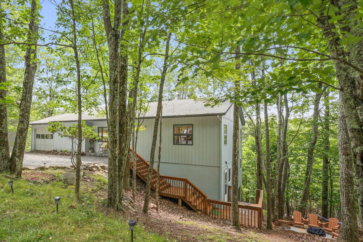 Our rustic modern cabin is the perfect place for family or friends! Surrounded by beautiful mountain views from our windows & decks! Take a whirl down our slide, play a game of pool, an arcade game or relax in our new hot tub! Our newly renovated & refurnished home has everything you need for a peaceful & fun retreat. Smart TV’s, fireplace, grill, fire pit & family friendly spaces. Watch a movie on our 100” screen & projector! So many local attractions to enjoy! 20 mins from Blue Ridge, Georgia!