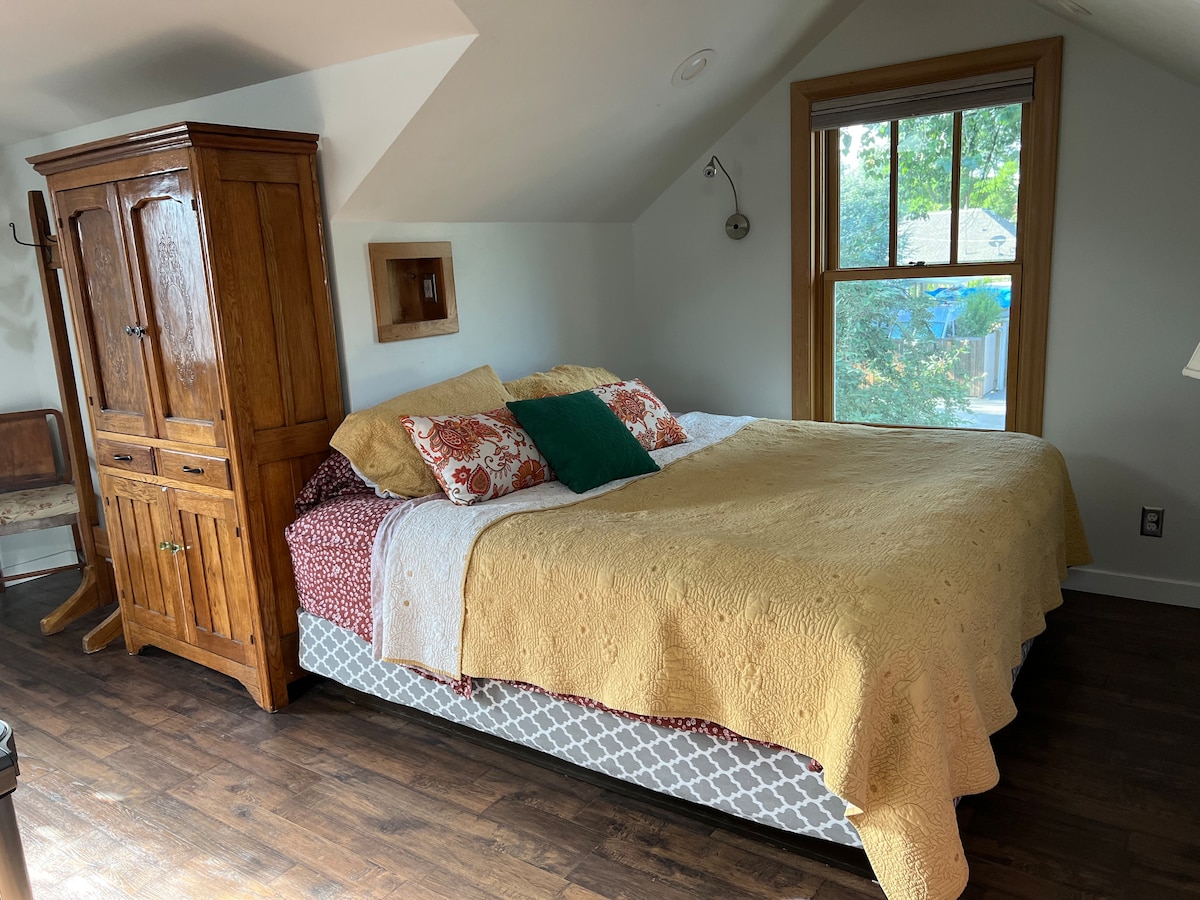 Fullbúin svíta á fallegu sögulegu heimili. Innifalið er sérinngangur, eldhús, notaleg stofa og heillandi svefnherbergi með samliggjandi baði. Eldhúsið er með öllu sem þú gætir þurft til að elda heila máltíð eða fá þér létt snarl. Sætur kaffibar og þvottavél/þurrkari eru til staðar þér til hægðarauka. Miðsvæðis við bæði miðbæ Boise og Hyde Park, sem gerir auðvelt að ganga að verslunum, veitingastöðum og gönguleiðum. Njóttu þeirra mörgu heilla sem þetta fallega hverfi býður upp á.