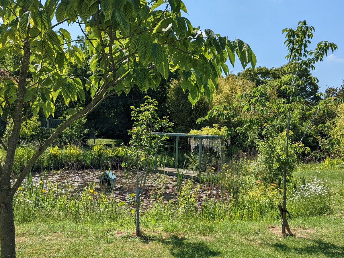 One of our 2 boutique, self-contained rooms set in the grounds of a Grade II listed cottage in the heart of Ashdon village, 10 mins away from Saffron Walden and 30 mins from Cambridge. Surrounded by beautiful countryside with lovely local walks & places of interest. A warm welcome at the village pub. We provide a continental breakfast with homemade sourdough, yoghurt and fruit compote. See airbnb.co.uk/h/appletreeview for a slightly larger room with easy chairs. Option to configure as twin.