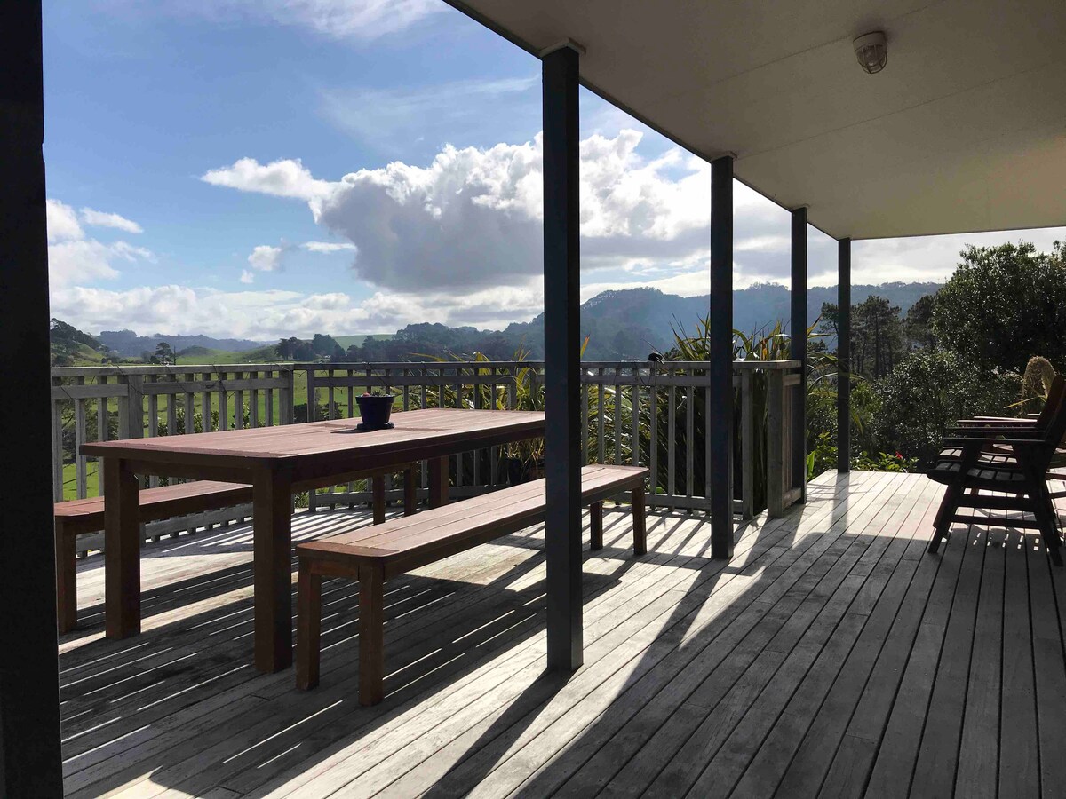 Slakaðu á og slakaðu á í friðsælli og einkahúsnæði okkar sem er fullbúið - aðeins 40 mínútur frá Auckland CBD og mínútur frá táknrænum ströndum Muriwai og villtum ströndum. Þessi sólríka eign er tilvalin fyrir pör og einstaklinga sem vilja komast í rómantískt frí eða hafa ævintýrið sem miðpunkt. Magnað útsýni yfir landið frá öllum gluggum. Nálægt vínekrum, kaffihúsum, gönguleiðum, golfi, brimbretti og hinni táknrænu gannet-nýlendu Muriwai. Við vitum að þú munt njóta dvalarinnar með meira en 500 5-stjörnu umsagnir.